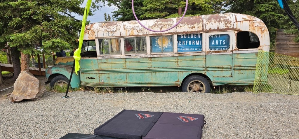 The movie replica of the bus where Chris McCandless lived (and died) sits in front of a bar. Inside the bus are photos and a storyline of McCandless’s attempt to reconnect with nature or so they say; truth is he starved to death for being a wild and crazy guy.