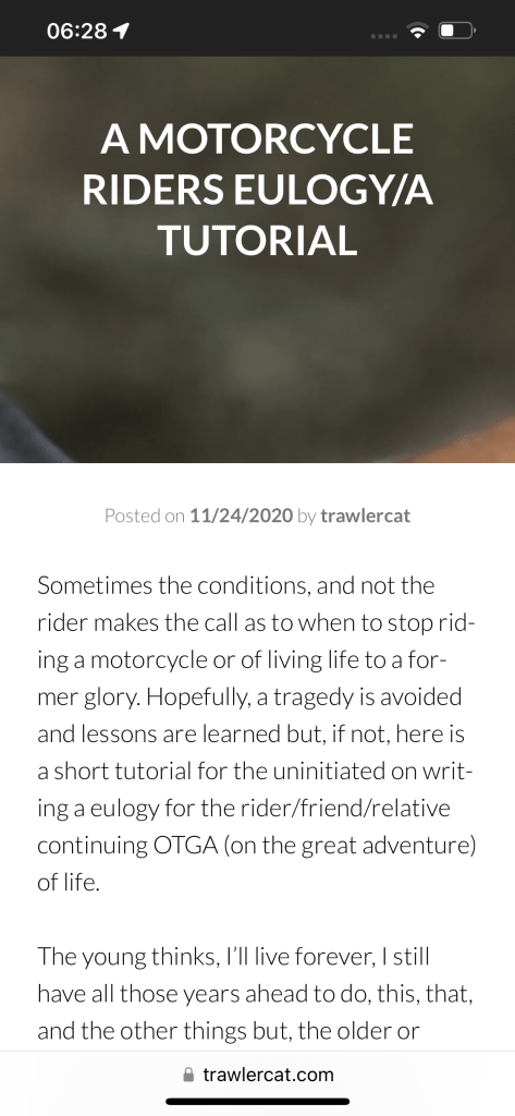 And so I remembered a dispatch post I made a while ago and searched on google mororcycle rider’s eulogy. And it’s still there and getting lots of looks.