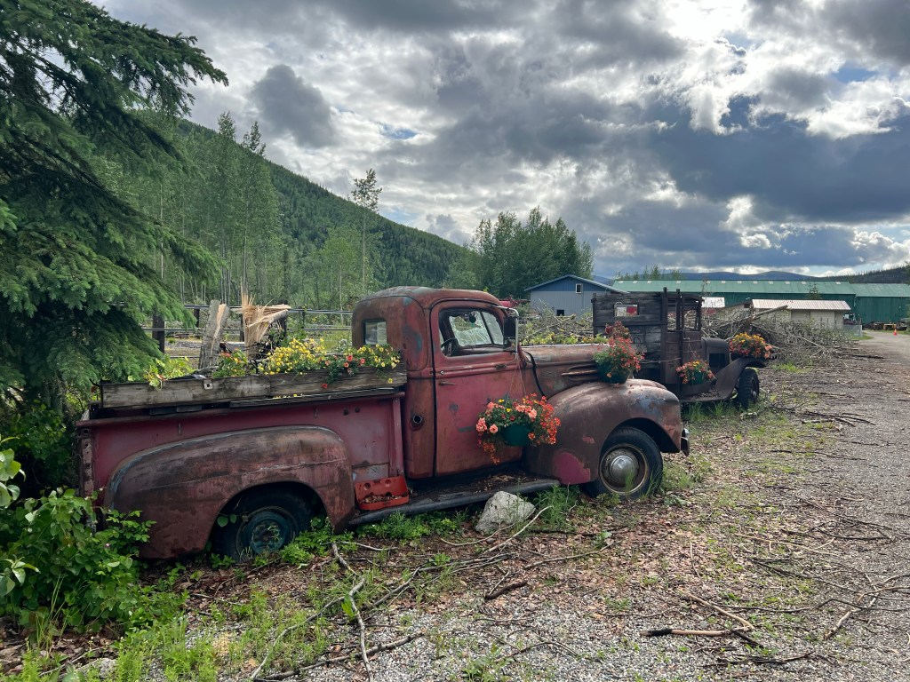 In go another $4 of coins that you insert one at a time until the digital counter is satisfied and off I go for a hot springs soak. I meet a Filipino guy from Anchorage who is having an RV adventure with family. He flew to LA bought an RV and with immediate family they are now seeing the Alaska they haven’t visited before. He said by the Stewart Credit Union is the finest Filipino food money can buy.