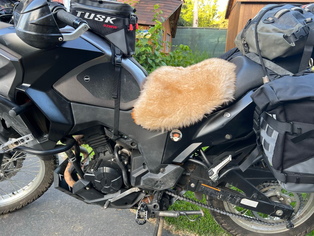 We ride to Valdez! The southern terminus of the Alaska pipeline. Two of the KTMs are sporting seat comforts seats, the Norden 901s are also probably after market as well and several like Robertos and Pauls have therm-a-rest mattress like inflatables (what’s your sleep number) and I am sporting half a sheep skin on top of mine.