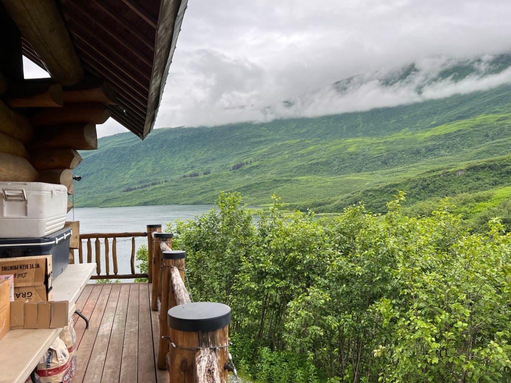 That’s Valdez today. And the cabin we are in is three stories high; the view is drop dead gorgeous and the ride, at times made it look like a version of Jurassic park and Avatar coming through Thompson Pass.