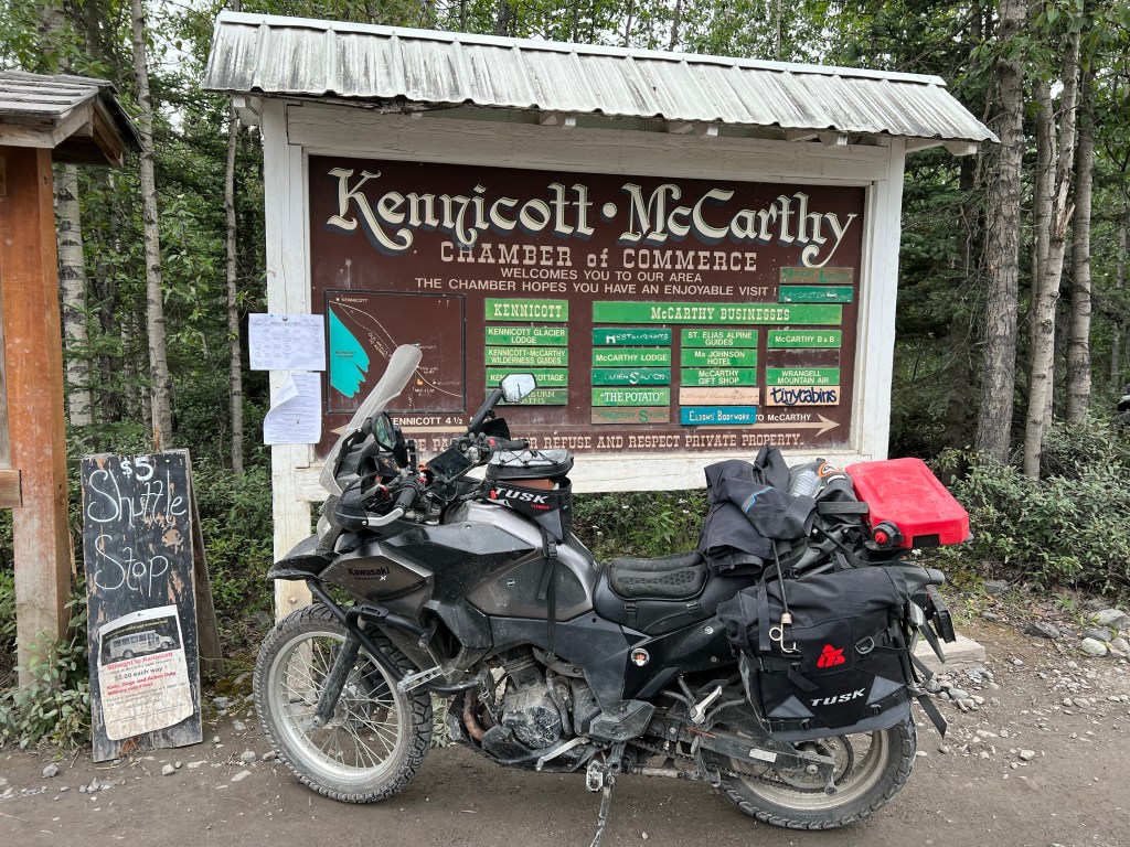Alaska Ride News, Vol. 1, Dispatch No. 1 (July 2023), pp. 15/7/2023: Didn’t plan it this way but, I’m the first person of our little ride group to arrive in McCarthy from Valdez. I’m at the world famous potato-head restaurant. Led Zeppelin is now playing on a loud stereo nearby;