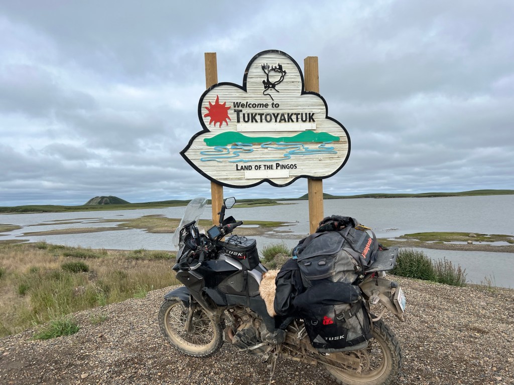 There’s a huge sense of relief in me now that I’m almost off the Dempster Highway. The most miserable gravelly road into Tuktoyaktuk is long past. Letting another ten pounds of air out of my front tire did the trick. The near white out conditions created by any truck, RV or large vehicles coming my way or me passing is over. And now food, fuel and lodging can be easily found I am still in Eagle Plains so anything can still change but, I am hoping that it only does so for the positive.