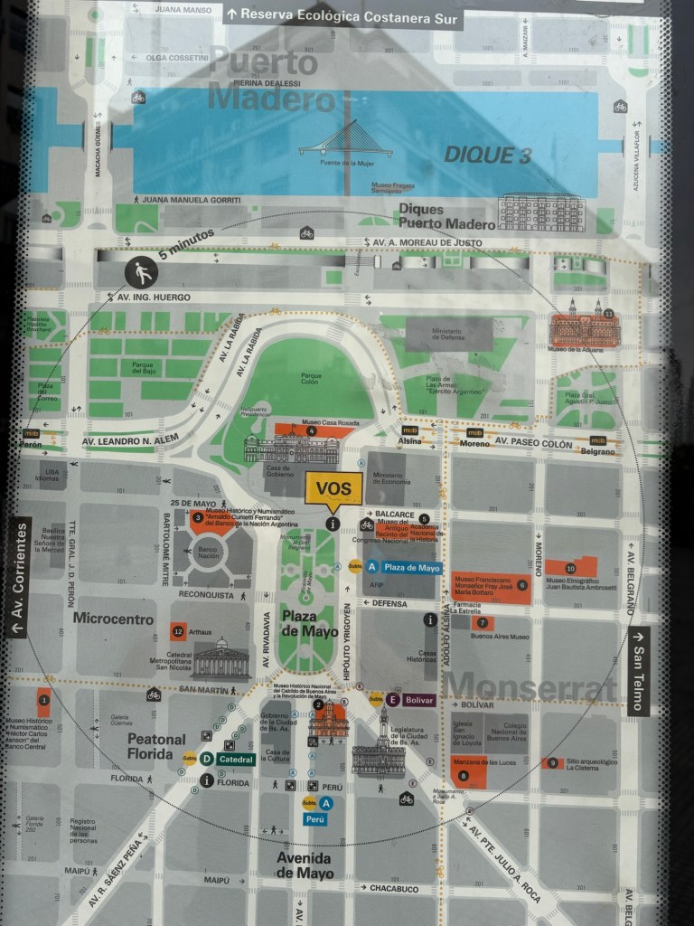 Later, I tried Uber to Plaza de Mayo (home to the iconic pink Casa Rosada, Argentina’s presidential palace—think their version of the White House). The app glitched: the driver went to the destination instead of picking me up. After a quick call and cancel, another ride worked. From there, I wandered the historic square, soaking in the atmosphere, then walked back to the Vilon Hotel. My left foot plantar fasciitis is holding up surprisingly well in my Tevas!