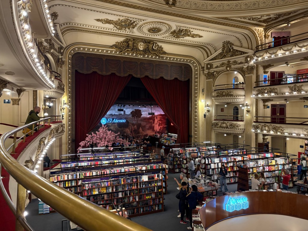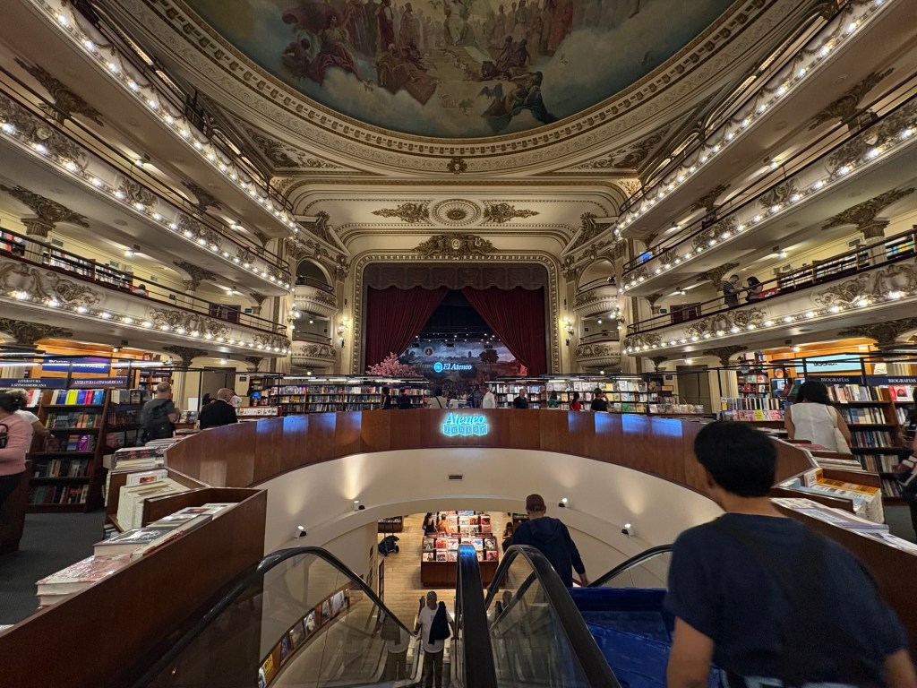 Upon waking, it struck me that I had yet to visit El Ateneo Grand Splendid, the celebrated bookstore housed in a former theater. The place is astonishing — velvet seats replaced by books, the grand stage now a café. Crowds gather simply to photograph themselves against its opulent backdrop. I took no selfies and felt every inch the tourist.